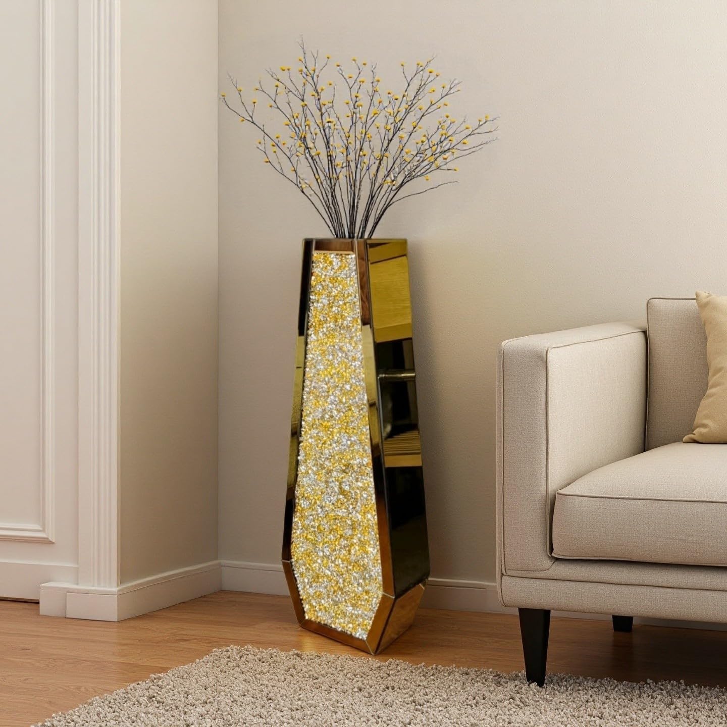 | Additional Features | Anti-Slip Base, Double sided crushed diamond, Silver mirror |
