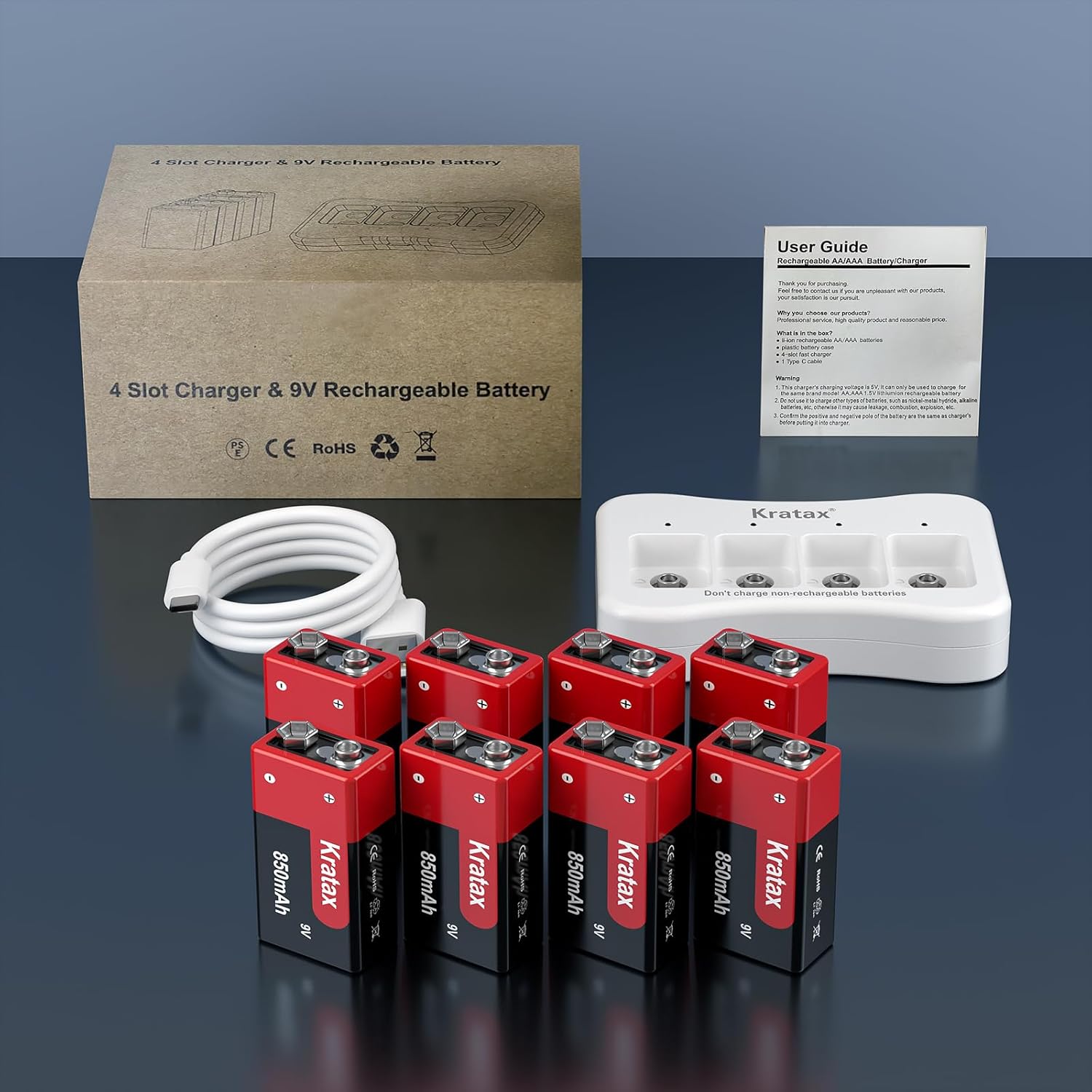 | BuiltIn Media | 4pack 9v rechargeable lithium-ion batteries and charger |