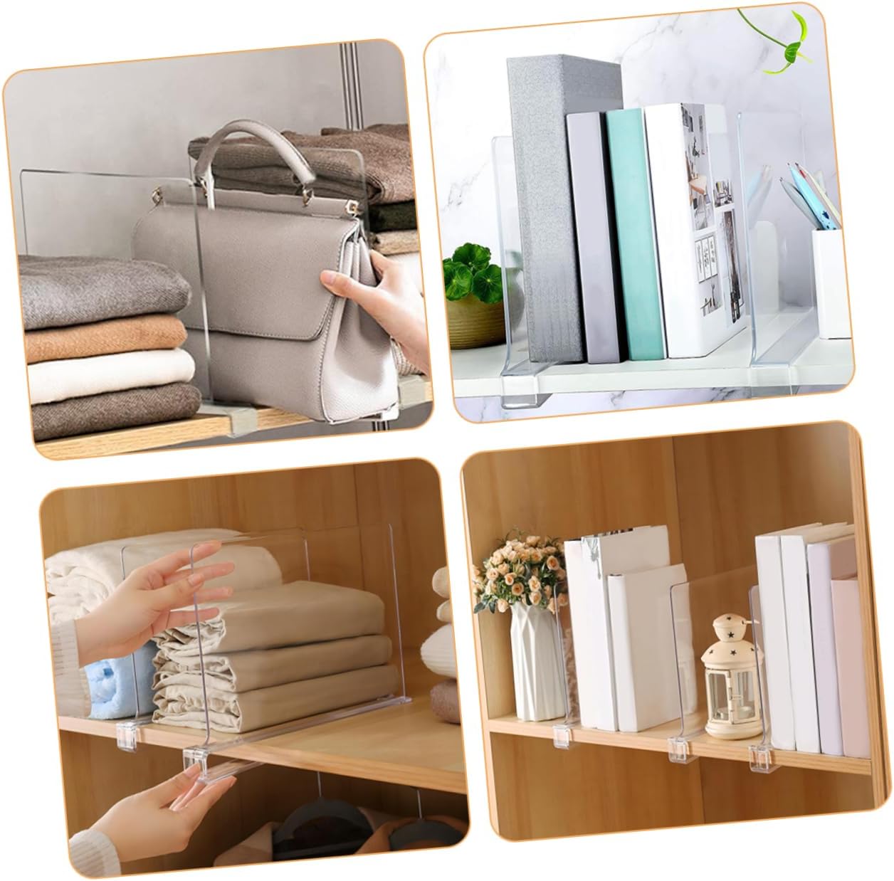 Package List 6 x wardrobe dividers Features -Size:30.00X20.00X2.00cm/11.79X7.86X0 retail shelf separator. -Material: wardrobe shelf divider -Color:Transparent purse divider -Installation is a breeze with no tools required; simply insert the dividers into the desired slots for immediate use clothes divider. -Made from clear, transparent material, these dividers allow you to quickly identify and access your stored items clear wardrobe clothes organizer. -Constructed from material, these dividers are designed to be and provide long-lasting use shelf organizer for clothes. -Ideal for a variety of , these dividers help you keep closets, cabinets, and bags neatly organized shelf separators. -The dividers can be easily adjusted to create a personal storage layout that perfectly fits your specific needs bedroom shelf organizer.Goods Descriptionshelf dividers Enhance your bedroom organization with our shelf dividers for clothes.bag divider organizer The adjustable feature allows you to adjust your storage layout to suit your specific needs.closet accessory These dividers help you keep your wardrobe neat and tidy, making it easier to manage your clothing collection