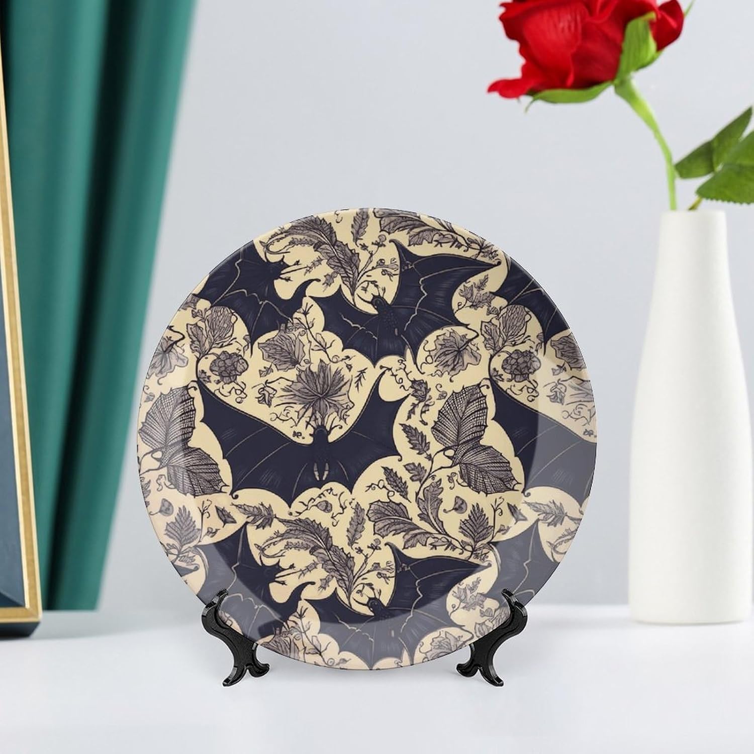 Decorative Plate for Display, Bone China Decorative Plate, Ceramic Dinner Plate with Stand, Vertical Ceramic Plate for Home Office Kitchen Table/Wall Hanging Decor
