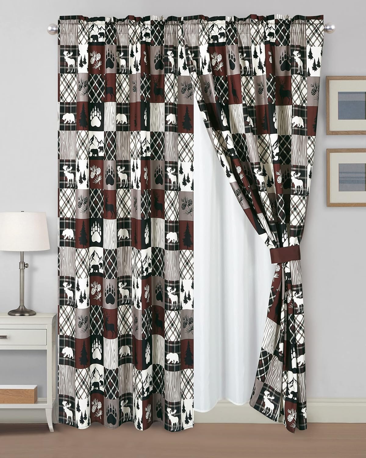 Give your bedroom a much deserved makeover with this southwestern lodge inspired collection. Designed with wildlife inspiration of deers gazing across the horizon with pinetrees and fish motifs incorporated with complementing plaid patterns. A touch of rustic elements to give a homey cabin lodge vibe evokes a sense of adventure and adds a bold statement to your space. This alluring decor will surely have you enjoying a warm and comfortable experience, sure to give delight to the whole family. The pattern is printed onto a lightweight microfiber polyester fabric, making the window curtains fade and wrinkle resistant. These fashionable curtain panels are stylish to place anywhere in your home. Each set comes with 2 curtain panels that have a rod pocket insertion along with attached sheer backing to filter light and complete your window treatment look.