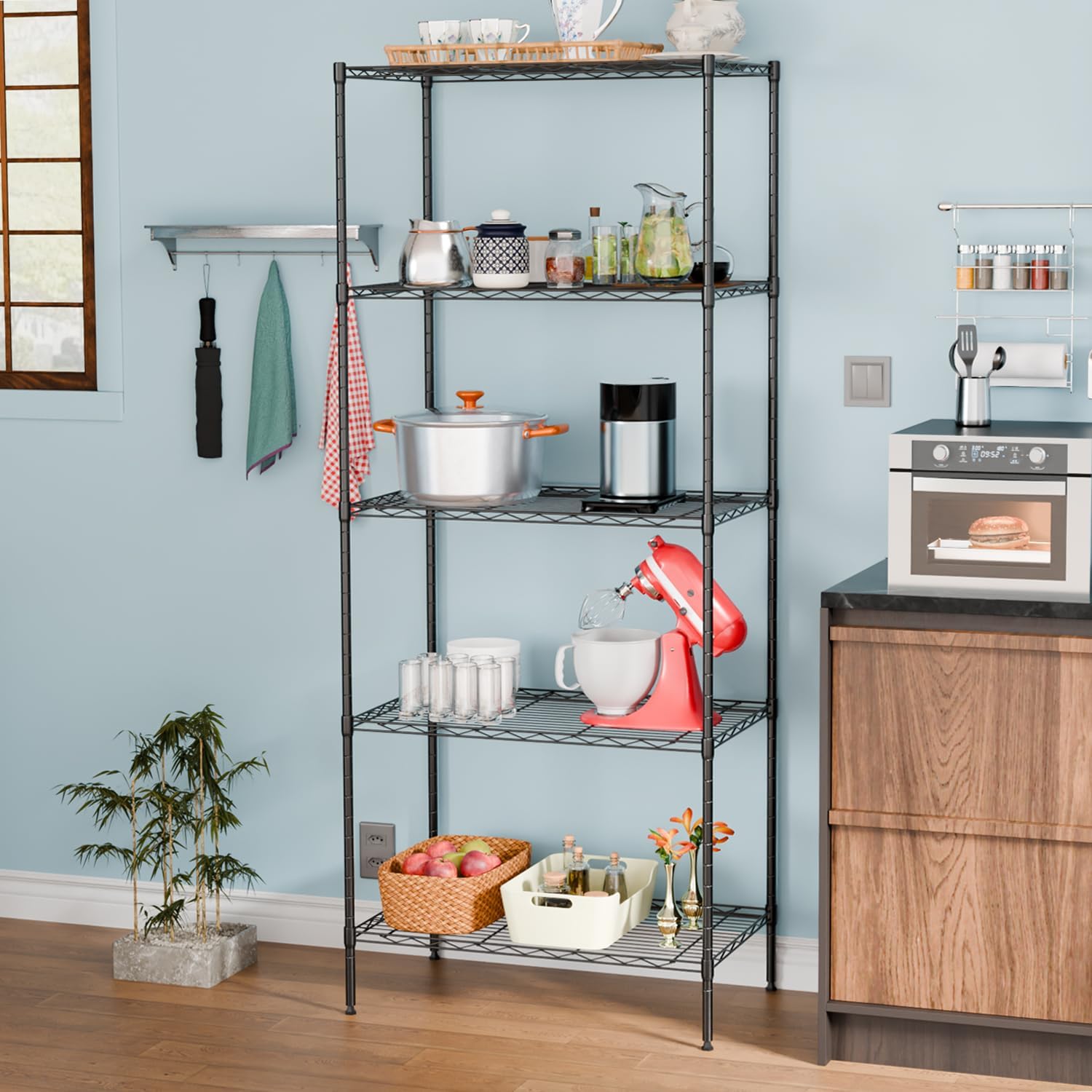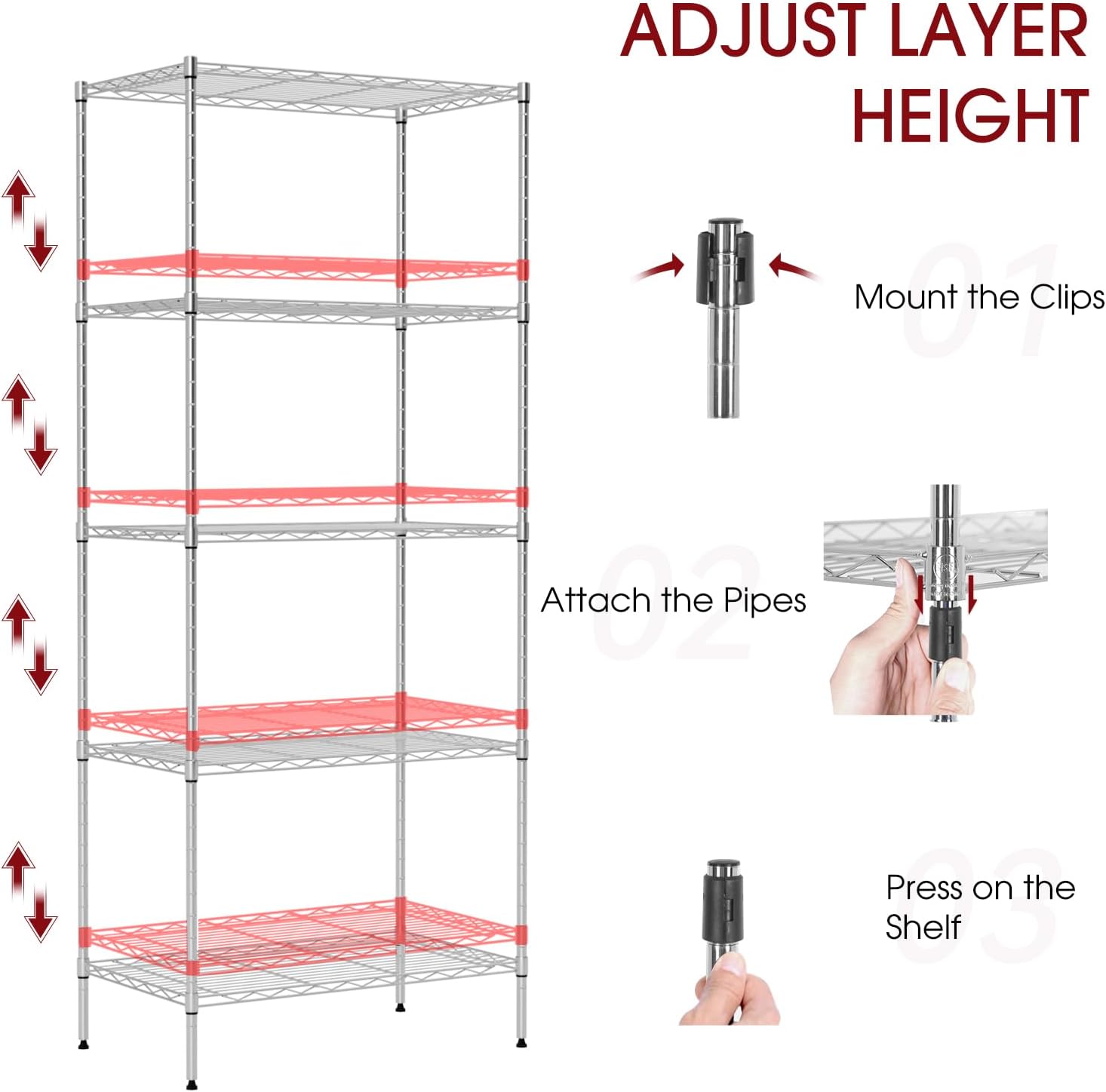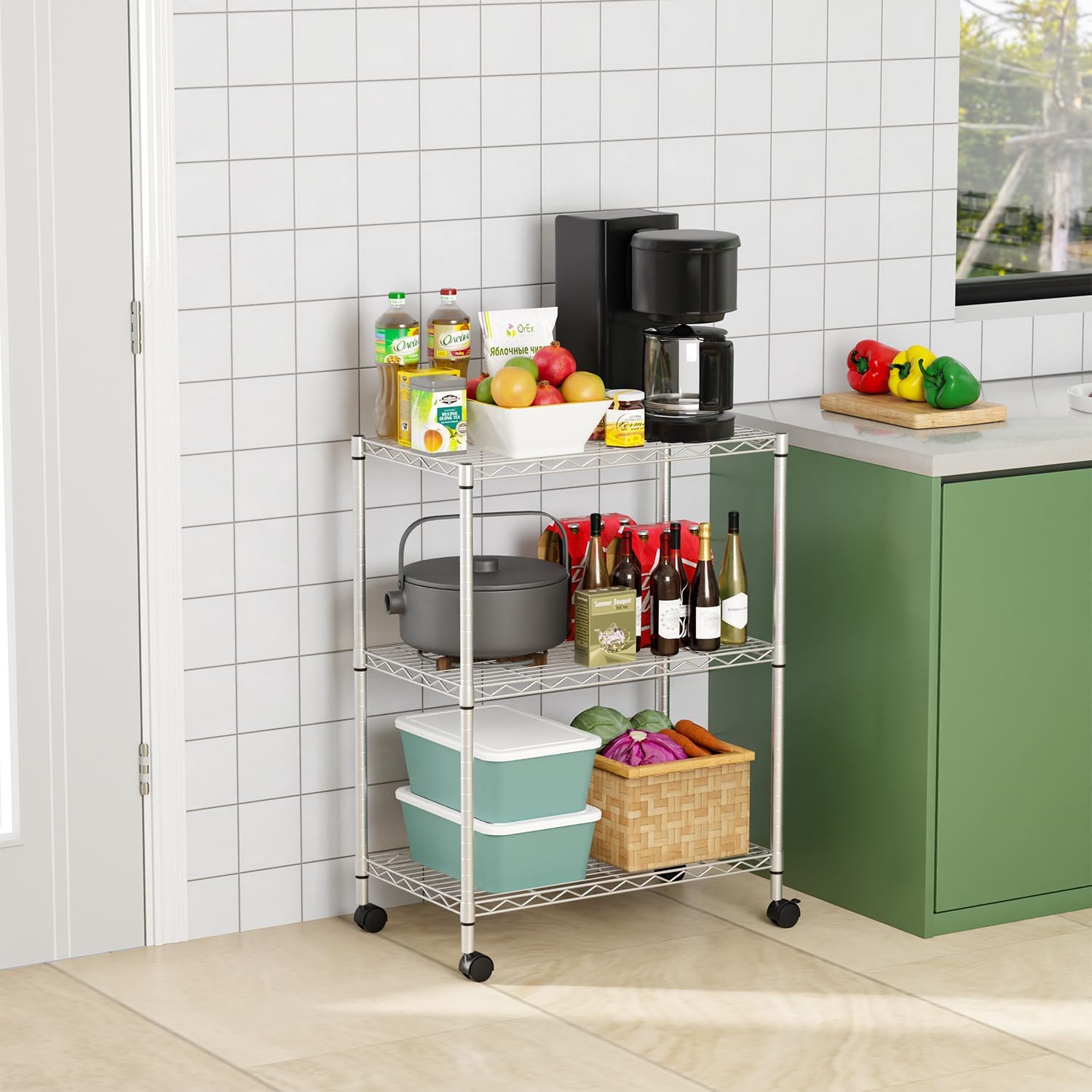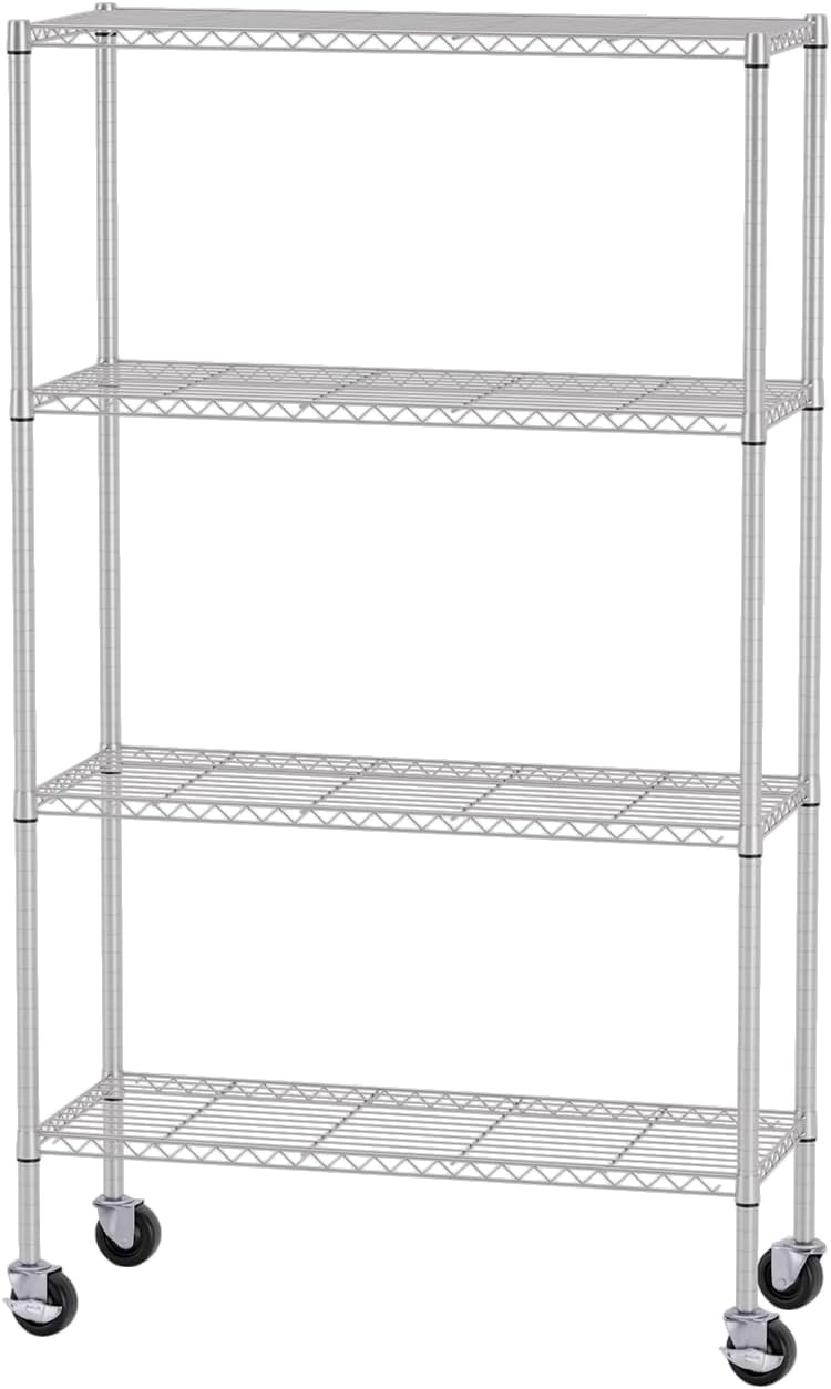 Maximize your storage space with our 3-Tier Shelving Unit, designed to handle heavy loads with ease. With a total weight capacity of up to 450 lbs, each tier can support up to 150 lbs, making it perfect for a variety of storage needs. This wire shelving unit is made with the durable V-shaped steel wire construction that ensures stability. This storage shelf also has the rust-proof and scratch-resistant finish that guarantees long-lasting use. Easy to set up and fully adjustable, this versatile storage rack is ideal for use in your home, bedroom, kitchen, or even in commercial spaces. Organize your space with this sturdy and reliable storage solution.