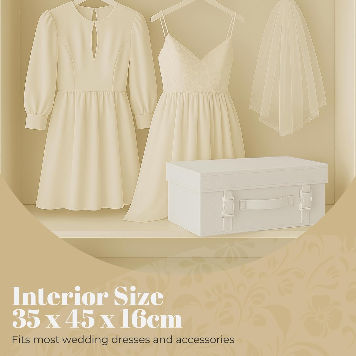 Exclusive breathable box for safe storage - medium - ideal for wedding wear and wedding dresses. Also suitable for keepsakes, bedding or off-season clothing. PH neutral.