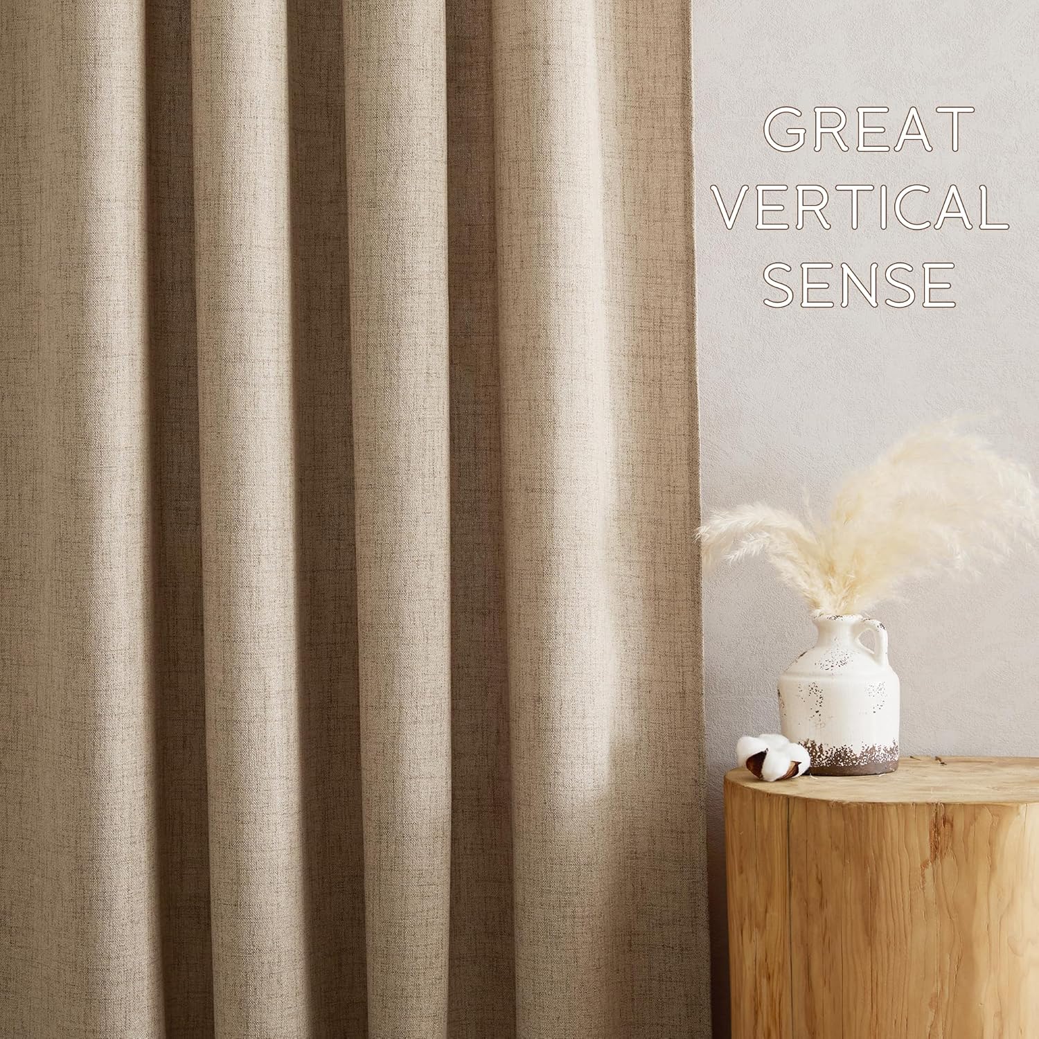 Do you want a curtain that can refresh your home decor with vintage and casual style? Then NICETOWN natural flax linen curtains will satisfy your need.NICE CHOICE:Made by hand and made of high-quality fabric makes the curtains are long-lasting. More size choice for you selects to match your windows. Each package includes 2 panels of linen-textured curtains. Each panel has 1.6" Grommets which can fit the most size rods in the market.The curtain material with 30% flax is retro and casual to make a quiet natural look to your windows and rooms. PERFORMANCE:Linen textured fabric is much thicker than normal sheer, which helps prevent the curious sights from outside and protect your total privacy but you still can enjoy the sunshine and have a happy time with your family.Reduce a part of strong sunlight and UV rays to protect your furniture and artwork. Formaldehyde-free, they can be used in the nursery, children's bedroom, living room, study room, and other places where you want privacy but still with a light filter.WASHING TIPS:1. These linen curtain is easy to care for and dirt-proof. But for the material is made from 30% linen, to keep the shape, you'd better dry-cleaning or wash the curtains without detergent. 2. Quick ironing or steam clean if it is necessary. Do not bleach.NOTE: Due to different screen displays, the color of the actual item may vary slightly from the above images.