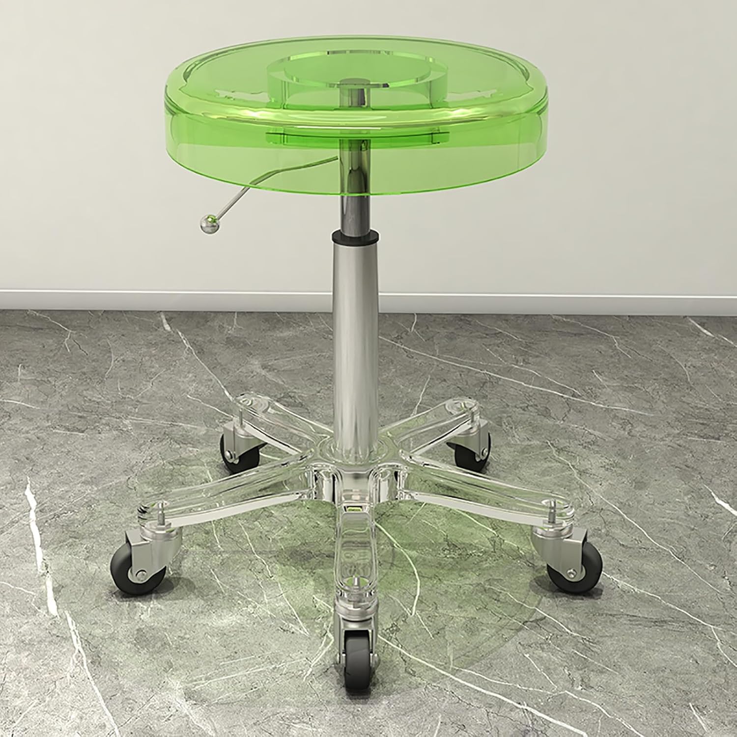 Rolling Stool with Wheels, Acrylic Swivel Stool Chair Heavy Duty Stool for Shop Guitar Lab Tattoo Workbench Medical, Adjustable Swivel Stool Chair (Color : Clear, Size : Crystal casters)