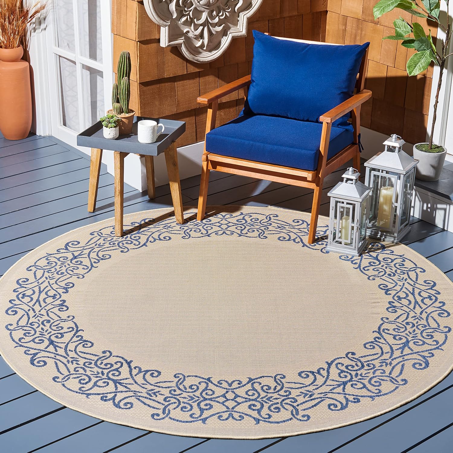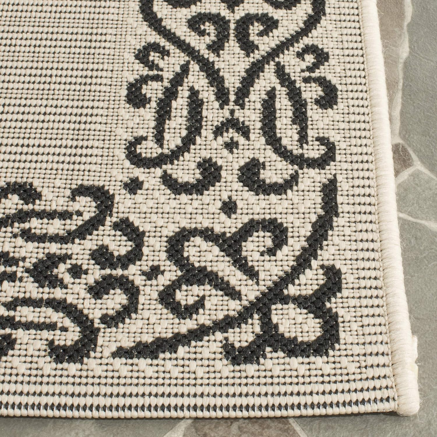 Safavieh's Courtyard Collection is inspired by timeless designs crafted with the softest polypropylene available. This rug is crafted using a power-loomed construction and features a main accent color of natural. Perfect for any backyard, patio, deck or poolside, this rug will instantly turn your outdoor area into a resort-style entertaining space. Finely crafted for seasons in the sun and years of open-air gatherings, the Courtyard rug instantly elevates any interior or exterior décor to a space of visual inspiration. More than a decorative enhancement, this rug is both and -ant to ensure carefree maintenance. With its style, practicality, and transitional decorating options, this rug extends an open invitation to gather and may just spark impromptu parties. Primary Color: NaturalPile Height: 0.25 inches Material: Polypropylene Style: Contemporary Construction: Power-loomed Rug Type: Indoor/Outdoor Feature: Latex Free Rug Dimensions: 5'3" x 7'7"