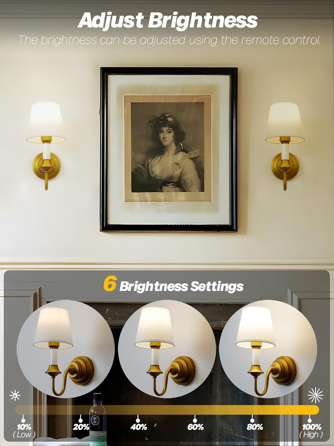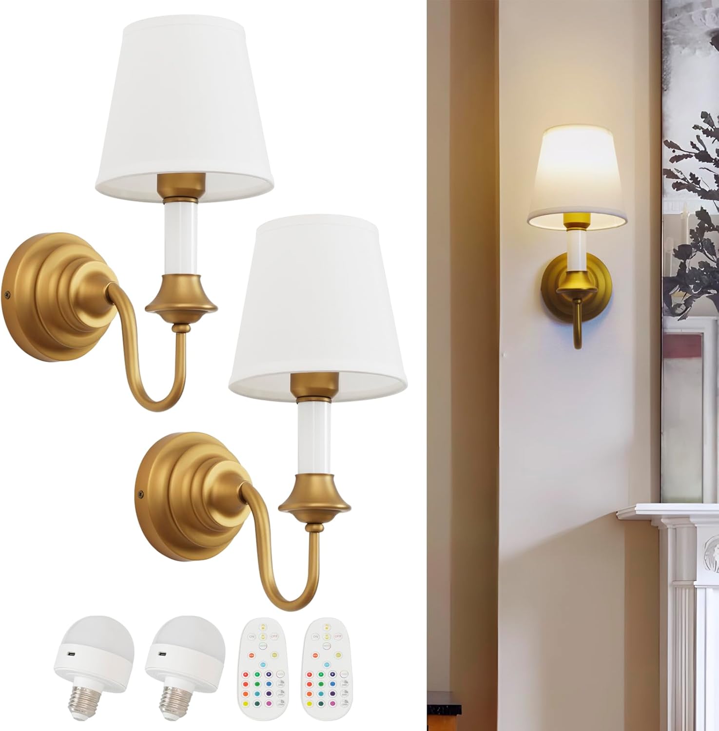 | Included Components | 2 Battery Operated Wall Sconces, 2 Fabric Lampshade, 2 Rechargeable Bulbs, 2 Remote Controls |