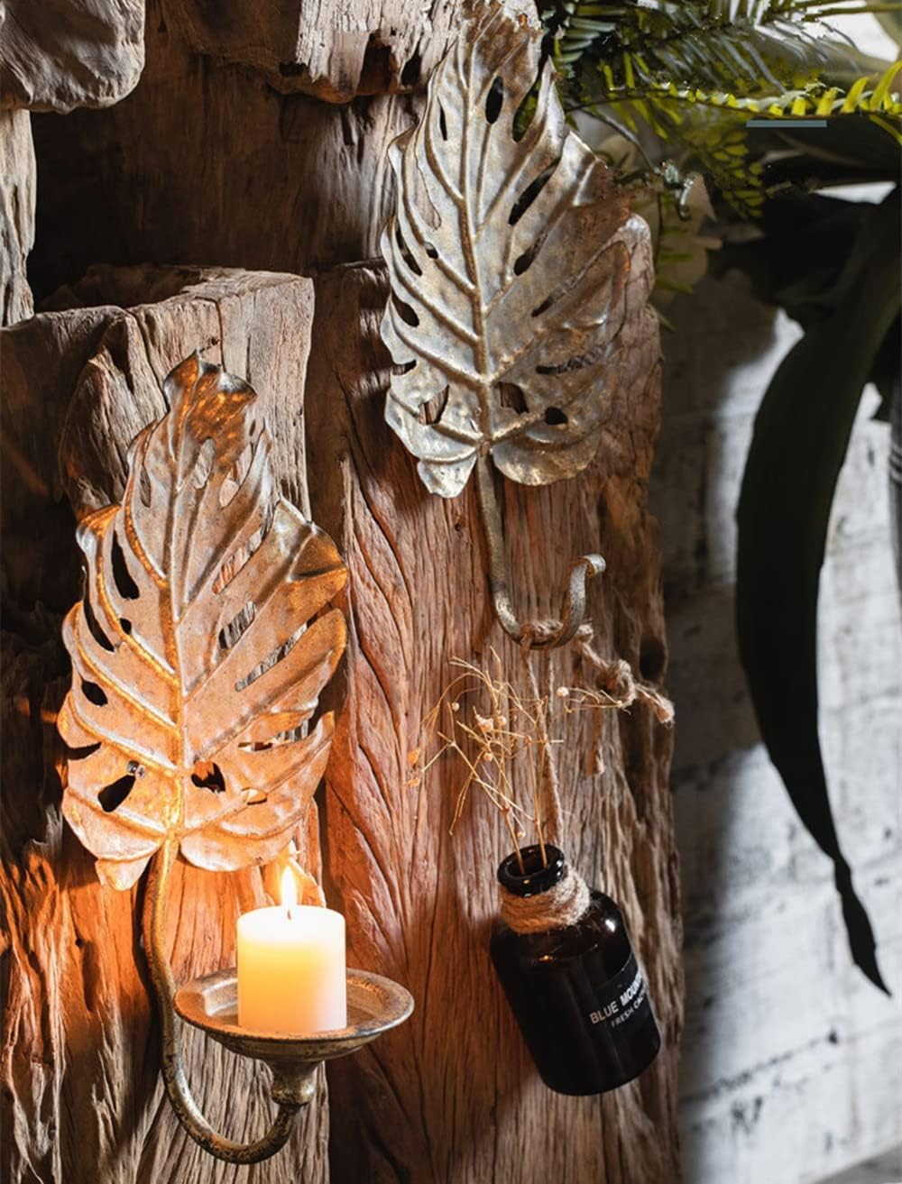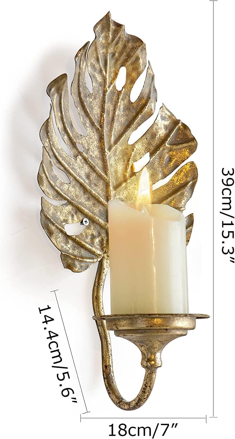 WINTENT Candle Holder Wall Candle Holder Metal Candle Holder Leaf Tea Light Holder Decorative Candle Holder for Hanging Lantern Antique Gold Features: Material: iron Description: wall tea light holder Colour: antique gold / bronze Description: 1. Candle holder for tea lights or pillar candles, diameter 8 cm (not included). Suitable for real or LED candles. 2. Hand-crafted, tightly welded, fine design and design, elegant and high quality. 3. Metal candlestick is not only a decoration, but also a perfect choice for the lifestyle with every romantic details. 4. Metal lantern leaves in antique look, set of 2, assorted 5. Creative candle holder is a work of art for decorating hotel, kitchen, bedroom, living room, etc.Ideal for wedding, ball, dinner, anniversary, birthday party, celebration festival etc. Box contents: 1 x wall candle holder (candles not included). Note: 1. There may be an error within 1-2 cm of the manual measurement. Please receive the actual product. 2. As this is a handmade product, some minor imperfections are antique designs. This should be known beforehand.