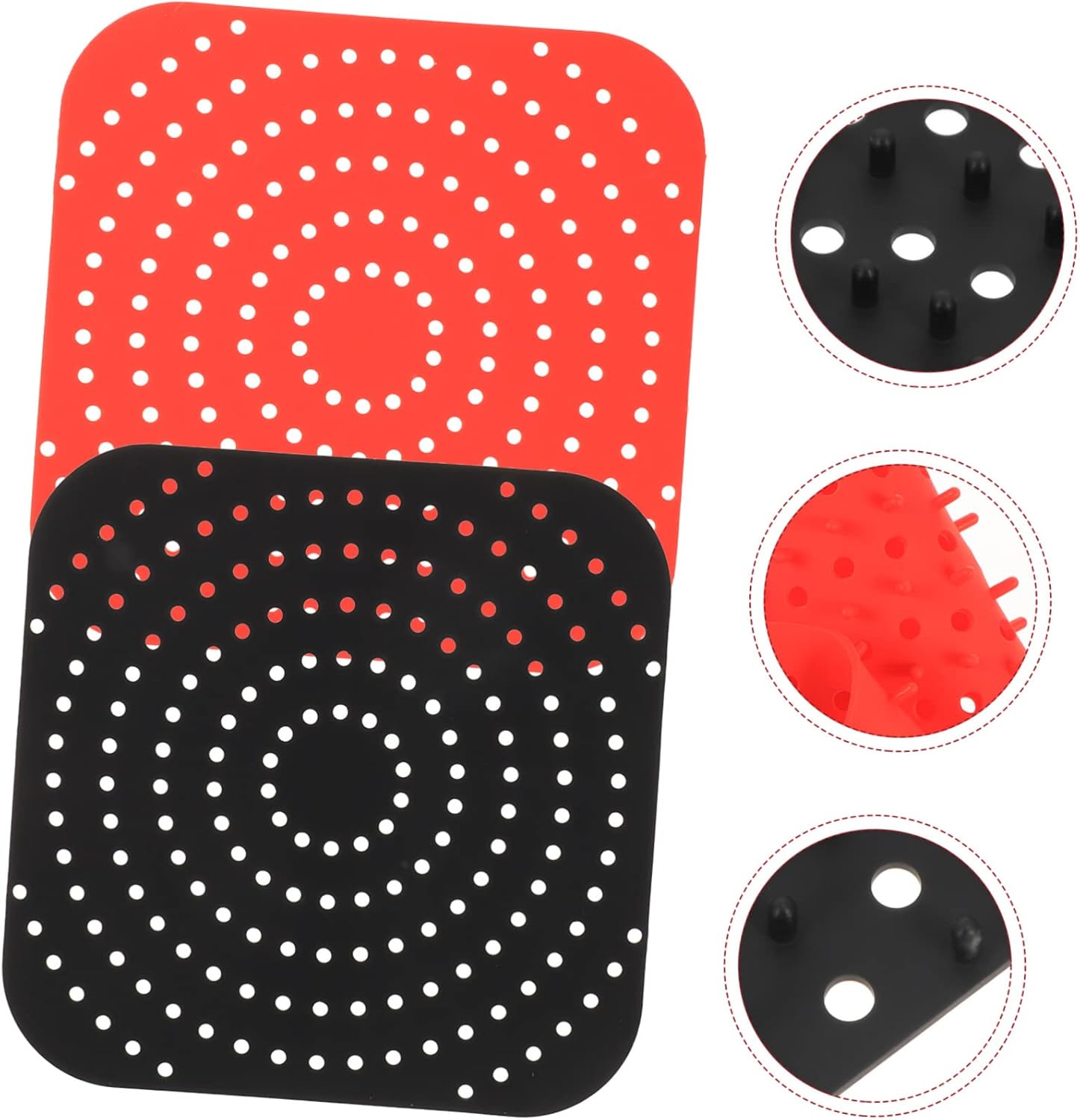 Package Include 4 x Air Fryer Pads Characteristics -Material:Silicone washable silicone mat - Size: 21.59X21.59X5.00cm/8.48X8.48X1.97in reusable pad for air fryer - Color: Assorted Color baking supply -The smooth surface makes it easier for them to remove the food, keeping it aesthetically pleasing and tasty easy cleaning silicone liner. -Air Fryer Silicone Pot prevents food from directly contacting the air fryer and causing stains reusable baking mat. -Exhaust hole design, and your steamed food will not be destroyed. modeling will make people more appetite kitchen gadget. -Air Fryer Pad can prevent food from sticking to your air fryer. Prolong the life of your air fryer non-stick baking mat. -Made of high-grade silicone material, and , you can use it with confidence silicone air fryer tray.Goods Descriptionbaking supply Made of and high-class silicone material, it is .air fryer reusable pad Easy to clean and use, saving time and effort.food baking mat If you are looking for fryer inner liner, then you must not miss our reusable Air Fryer Liner.silicone air fryer liner It is easy to use and operate, bringing much convenience to you.silicone baking pad The smooth surface and multi-holes design makes it easier for them to remove the food, keeping it aesthetically pleasing and tasty